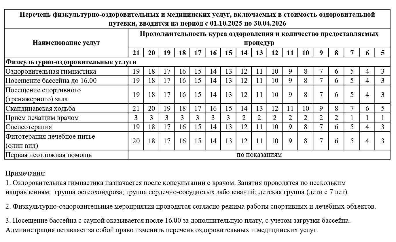- С 01.10.2025 по 30.04.2026 при оформлении оздоровительной путевки можно получить бонусные сеансы спелеотерапии.